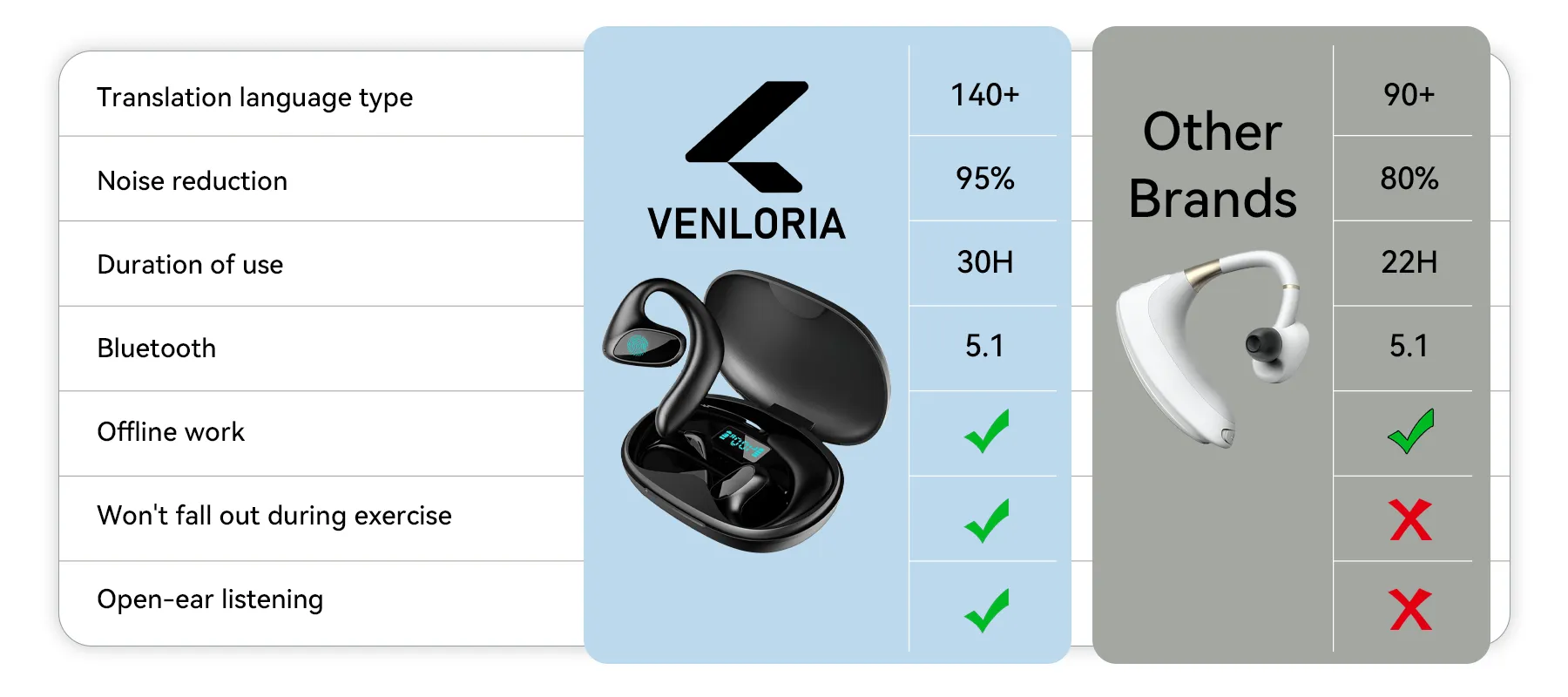 On your journey, it's both your translation expert, helping you easily break down language barriers, and your music headset, delivering high-quality stereo sound to let you immerse yourself in your favorite tunes.Venloria AI Translation Earbuds perfectly blend communication and entertainment, so you no longer need to carry extra devices. Get two incredible experiences with just one pair of earbuds.